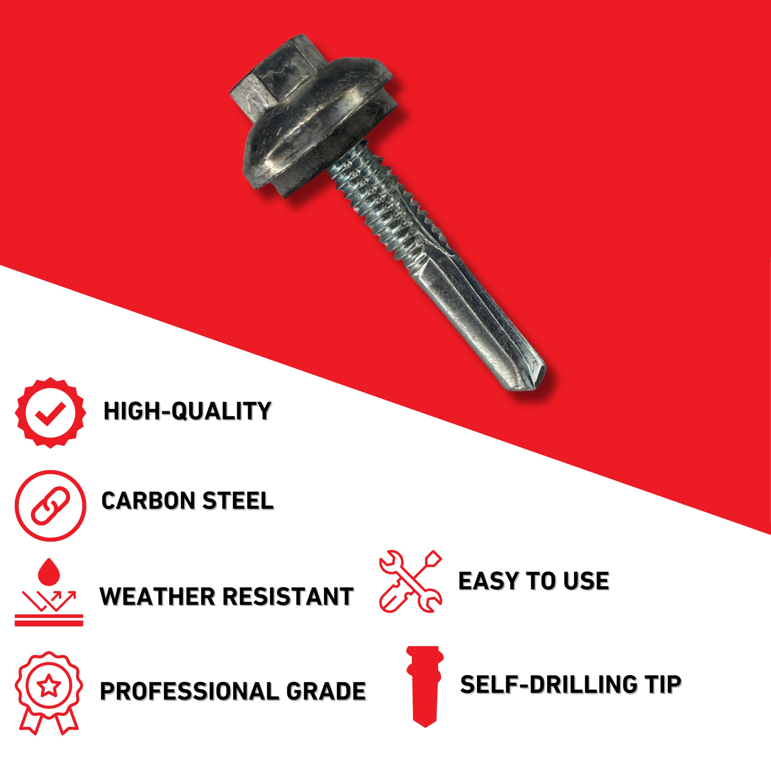 - [Self-Drilling Sharp Tip] - Sharp Self-Drilling tip is designed to penetrate steel thickness up to .500”. No pre-drilling needed! - Sharp drill point and long flute length ensure proper clearance of heavy gauge metal before any thread engagement. - Thread-to-point ratio engineered to provide maximum pull-out strength in heavy gauge steel.
