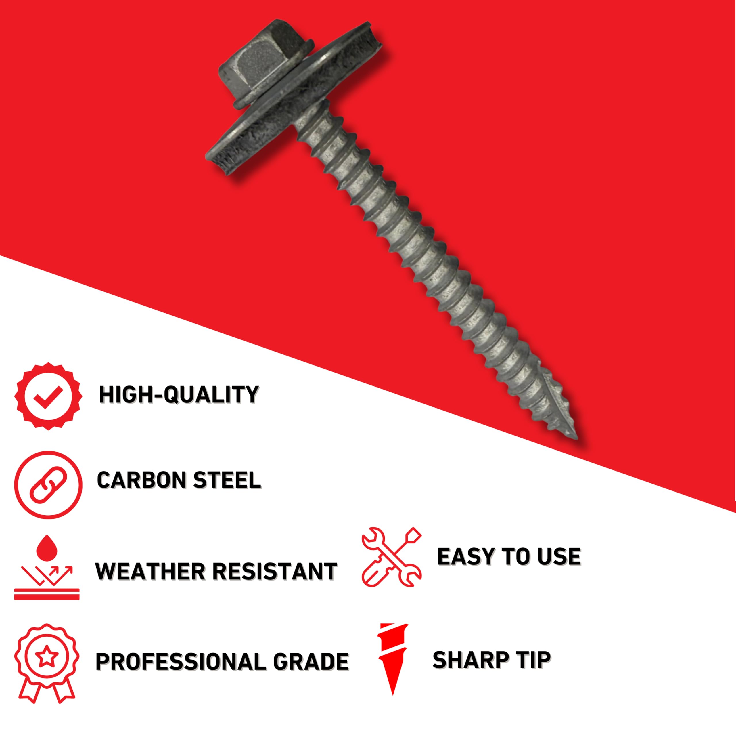 - [Self-Tapping] -Type-17 Sharp Tip easily pierces into OSB and plywood and prevents pigtails from embedding themselves in the washer. No pre-drilling needed! - 3/8” Hex Head. - 100-Count Screws/shipped in (4) 25-count bags.